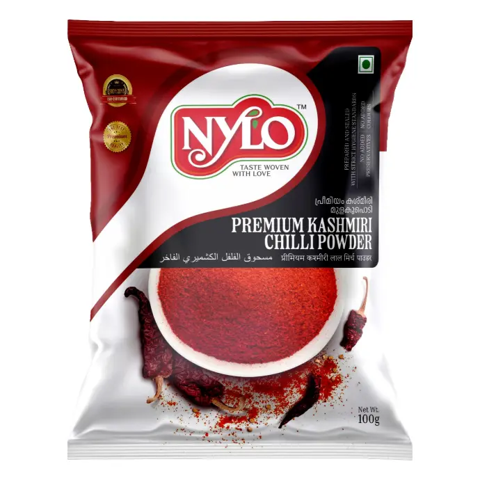 Premium Kashmiri chillies ground to perfection for rich red color and mild heat. Perfect for dishes where vibrant color is desired without intense spiciness.